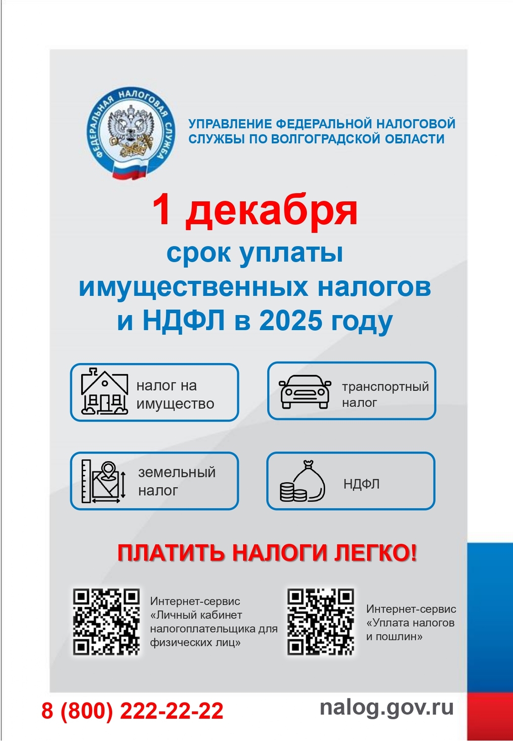 Объявление о необходимости уплаты имущественных налогов физических лиц и НДФЛ