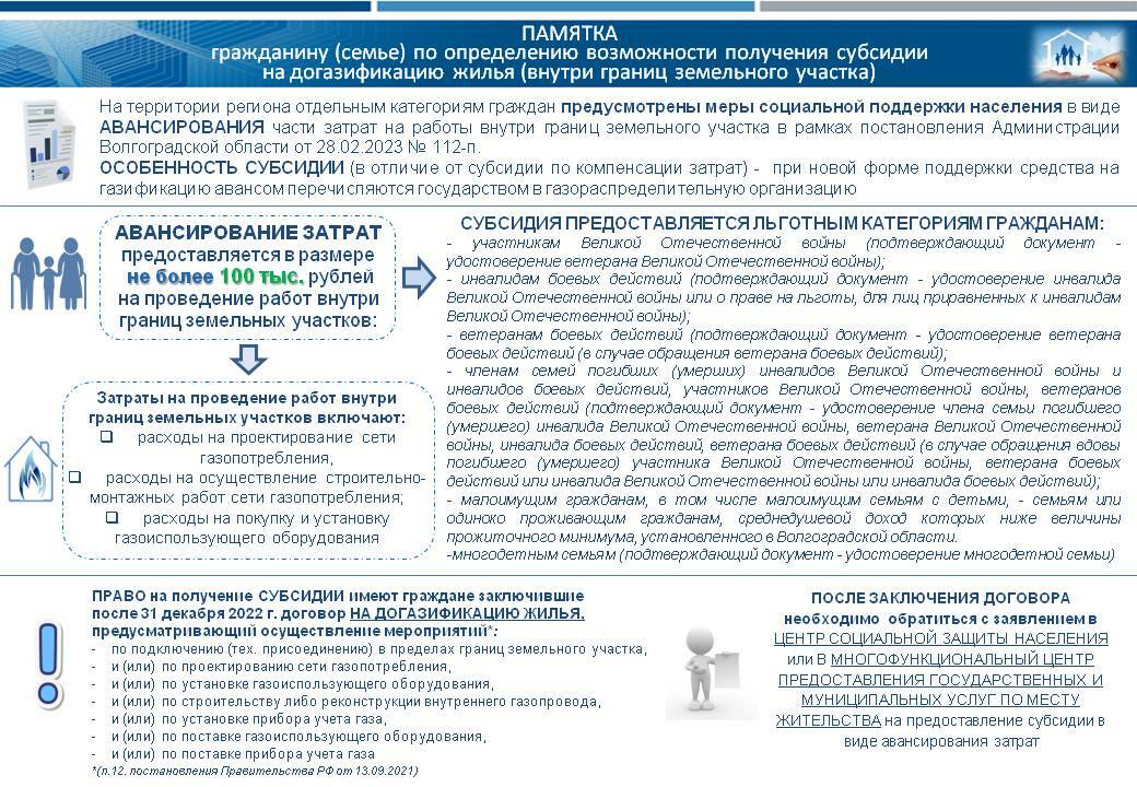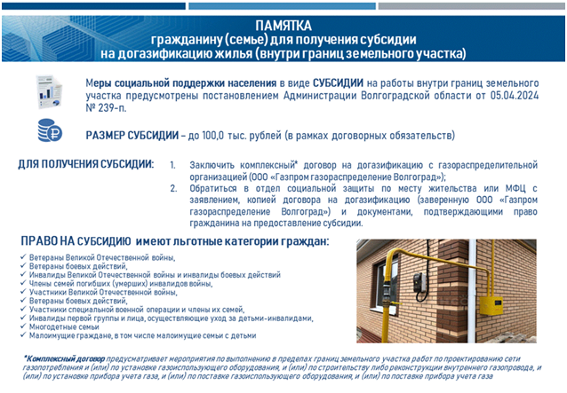 Памятка гражданину (семье) для получения субсидии на догазификацию жилья (внутри границ земельного участка)